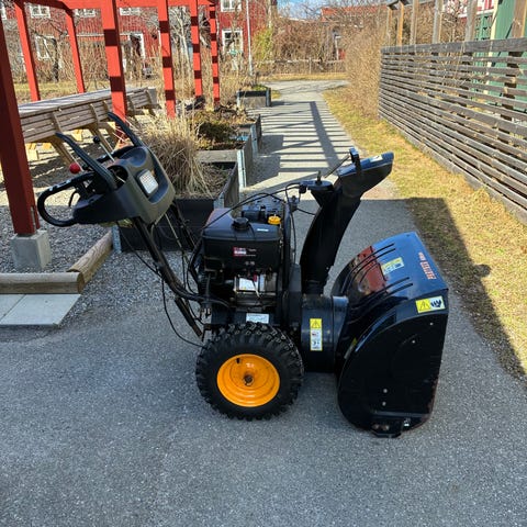 Norlet 10/33 snöslunga med bensinmotor och snökedjor för bra grepp. Tvåstegsslunga med inmatningsskruv och utkastare framtill. Maskinen har grovmönstrade däck för bättre fäste på snö och is samt justerbara reglage på styret. Avsedd för snöröjning av uppfarter, gångar och andra ytor runt bostad eller fastighet.