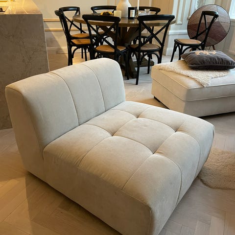 Fåtölj från Jotex i grå sammet.