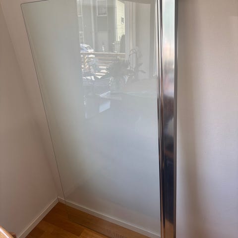 Svedbergs spegelskåp för badrum med integrerad belysning. Skåpet har flera hyllplan i glas och två spegelförsedda dörrar i glas. Stomme i vit färg. Baksidan visar elanslutningar och drivdon för belysningen. Avsett för montering på vägg i badrum eller liknande utrymme där extra förvaring och spegel önskas.