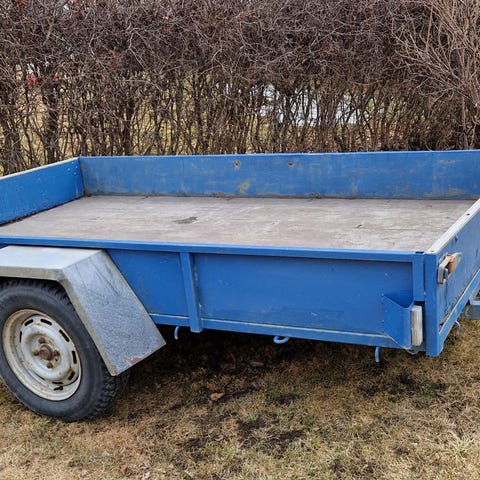 Brännansläpvagn med flak och hembyggd kåpagrå