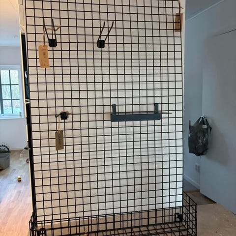 Granit väggnät i svart metall formgivet av Aage Petersen. Nätet monteras på vägg och kan användas för förvaring och organisering i till exempel hall, kök, kontor eller sovrum. Passar för krokar, hyllor och korgar som kan hängas på nätet för att hålla ordning på mindre saker som nycklar, papper, köksredskap eller accessoarer.
