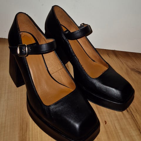 Fina läderskor med rem, använda men välvårdade.