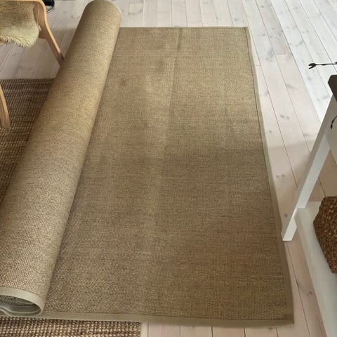 Ikea Morum matta i storleken 160x230 cm. Mattan är rektangulär och har en beige färg med vävd struktur. Passar exempelvis i vardagsrum, sovrum eller hall. Material enligt Ikea-etiketten, lämplig för inomhusbruk.