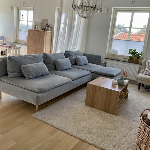 Vi säljer nu våran gråa divansoffa ifrån märket Manhattan, med anledning av att vi ska flytta, och därmed ha en helt annan stil.