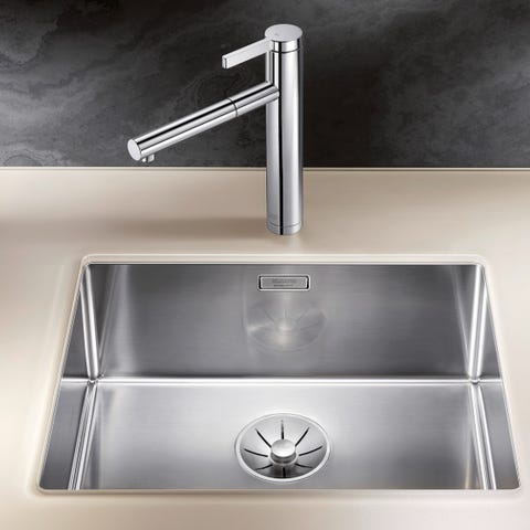 Kvalitetsdiskho i rostfritt stål med två hoar, från Blanco. Model Andano 500/180 Vänster Produktnummer: BC-522991