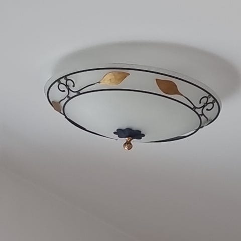 Säljer taklampa / plafond med lite grönt mönster på. Fungerar utmärkt! Har använts i ett kontor men går lika bra att ha i tex ett barnrum. Kom hit och montera ned!
