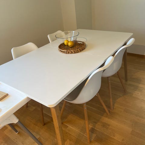 6 stycken vita barstolarna i serien Bergmund med tvättbar beige klädsel.