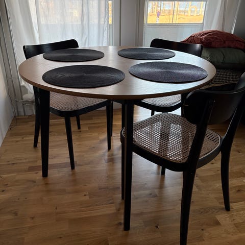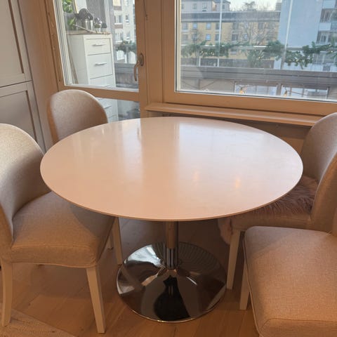 Runt fint bord i bra skick. Finns några små märken på ytan från vattenskada.