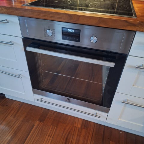 Electrolux glaskeramikspis ( induktionshäll) med ugn och varmluftsfunktion. Spisen har glaskeramikhäll upptill och inbyggd ugn med flera ugnssteg. Ugnsutrymmet är utrustat med galler och plåtar samt fläkt för jämn värmespridning. Front i svart och rostfritt utförande med vred och display på ovansidan. Passar för inbyggnad eller placering i kök där fristående spis önskas.