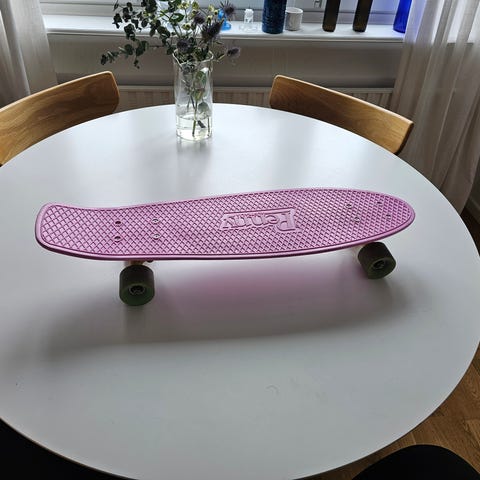 Säljer en lila original Penny Board (22 tum) med rosa hjul. I fint skick och rullar perfekt. En smidig bräda som är lätt att ta med sig överallt.
