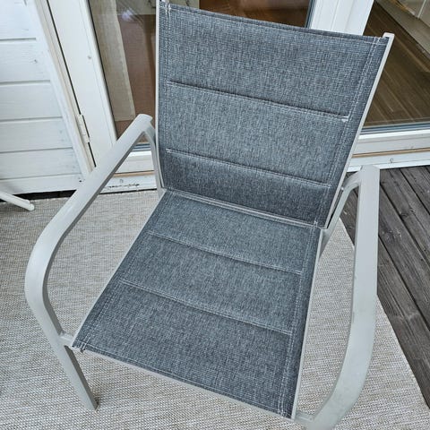 2st trädgårdsstolar med armstöd i svart textilene-tyg. Stolen har hög rygg och sits i nätmaterial som ger god ventilation vid utomhusbruk. Passar för balkong, altan eller trädgård tillsammans med ett utebord eller som fristående sittplats.