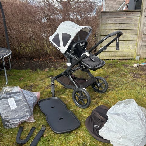 Bugaboo FOX med tre olika färger på sittdelar, två liggdelar ingår också