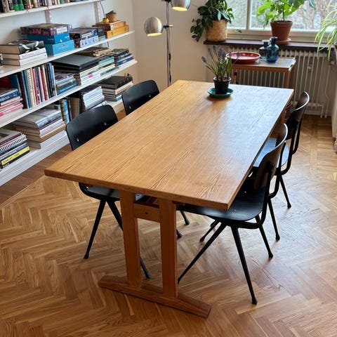 Skick: Stadigt och bra, men bordsskivan har lite brukssslitage och repor (se bilder).