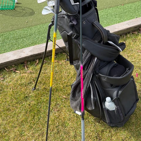 Mizuno MX-100 damgolfklubbor set. Setet består av flera järnklubbor samt olika träklubbor/driver och putter. Järnklubborna är av modellen MX-100 med metallhuvuden och standardlängdsskaft. Klubborna har nya grepp sedan något år. Klubbhuvudena är i metall med cavity back-design. Setet levereras med en golfbag av modell Strata med flera fack för förvaring av bollar och tillbehör. Passar för spelare som söker ett komplett set med både järn, träklubbor och putter. Skruttig men fullt funktionell medföljer