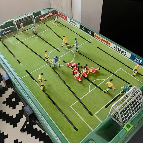 Målet är isärplockad och jag har märkt pinnarna så att man vet vilka som ska sitta ihop med varandra .