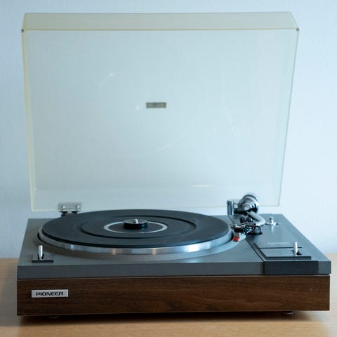 Retroskivspelare med Bluetooth och högtalare. Nypris 2 354 kr.