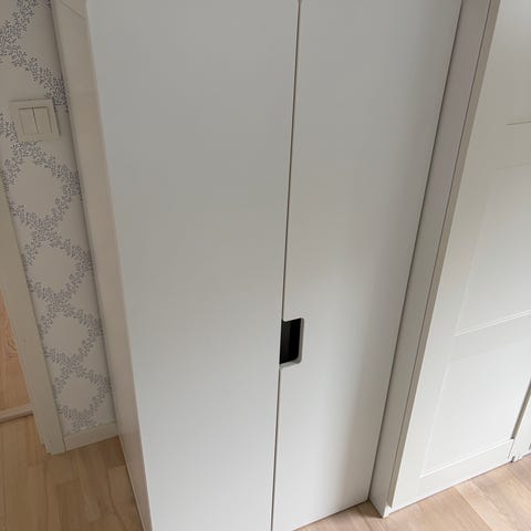 Vitt garderobsskåp med dubbeldörrar och runda handtag från Ikea