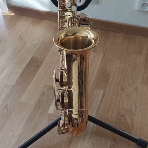 Fodralet har bärremmar för ryggbärning och handtag på sidan för enkel transport. Stativet är hopfällbart med tre ben och gaffelformad hållare upptill för att stödja instrumentet. Passar för förvaring och transport av mindre blåsinstrument tillsammans med ett fristående stativ.