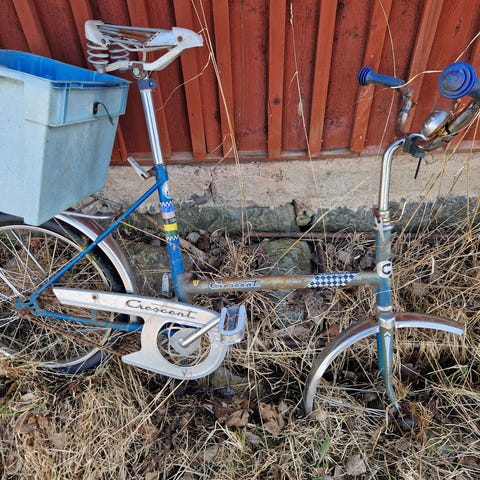 Crescent hopfällbar stadscykel i unisexmodell med liten ramstorlek XS och 16" hjul. Cykeln har lågt insteg, pakethållare bak och korgfäste fram. Utrustad med kedjeskydd, stänkskärmar och stöd. Passar för kortare turer i stadsmiljö och är enkel att förvara tack vare den hopfällbara ramen.
