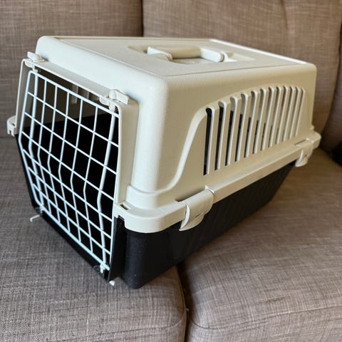 Transportväska för katt / liten hund / smådjur i brun och beige färg. Väskan har nätpaneler på sidorna och framtill för ventilation och insyn. Öppning på båda kortsidorna via dragkedja. Invändigt finns en mjuk, vit madrass i teddy. Väskan har bärhandtag upptill samt axelrem och är avsedd för transport av mindre husdjur som katt eller liten hund typ chihuahua mm.