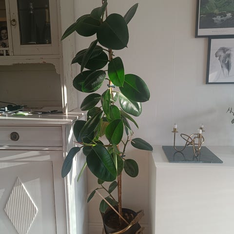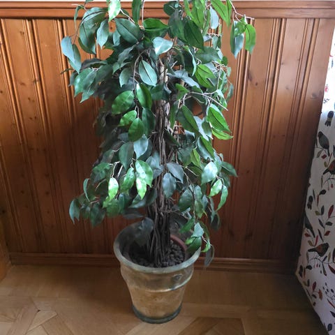 Benjaminfikus med självvattnande kruka ca 2 m hög.