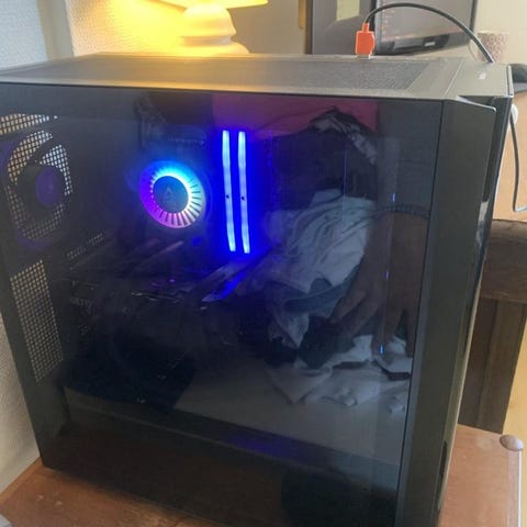 Svart metallchassi med transparent sidopanel
