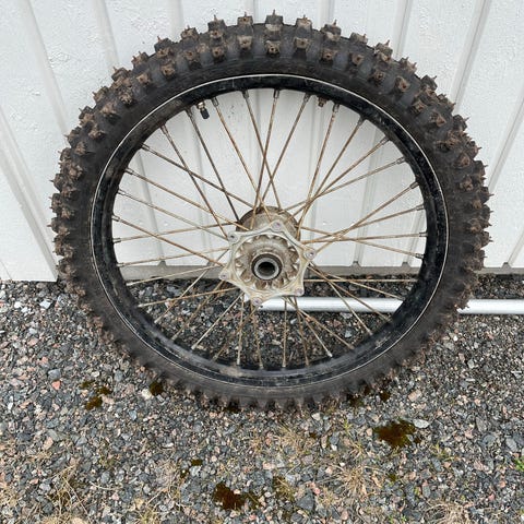Bromsskiva och vindruta är helt nya. Säljes som ett paket tillsammans. Kompletta hjul perfekta till att montera vinterdäck på.