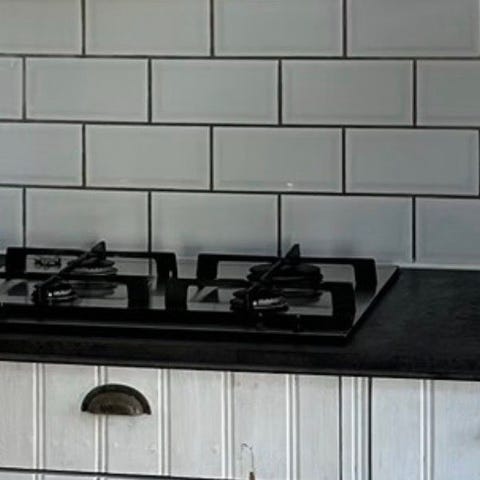 Plats för ugn, spishäll och värmelåda/tallriksvärmare. Bänkskiva i svart sten.