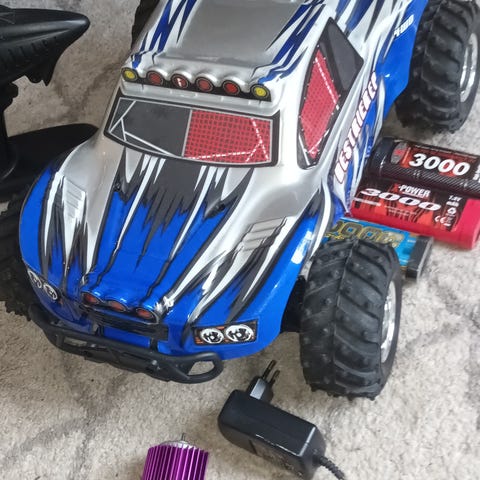 Ca 1 år gammal. Allt funkar. Fint skick. 2 hjulsdriven 2s. Batteri, laddare och kontroll ingår. Hämtas i Tvååker.