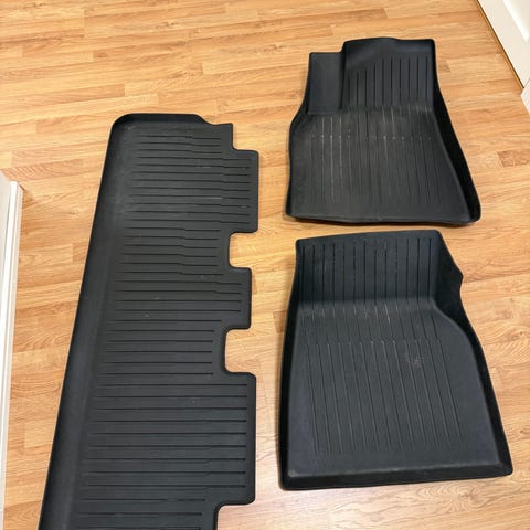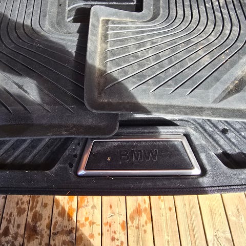 BMW gummimattor bak golvmattor i svart plast/gummi för bakre golvet. Mattorna är formade med upphöjda kanter och spår för att samla upp smuts och väta. Avsedda för elbil (BEV) enligt märkning på förpackningen. Levereras som set för bakre sätesrad. Dessa är för bilen BMW i4, helt oanvända och skriv gärna om du vill ha flera bilder på det