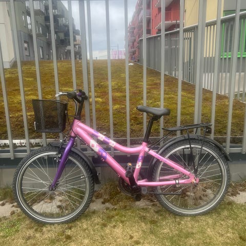 Crescent barncykel med 20" hjul. Cykeln har lågt insteg, pakethållare bak och cykelkorg fram. Utrustad med reflexer och kedjeskydd. Passar barn som behöver en cykel i storlek 20 tum för vardagscykling och fritidsbruk.