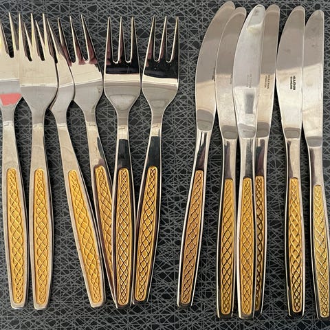 Vackra bestick från NilsJohan i serien Guldi. 24 karats guld på ädelstål.