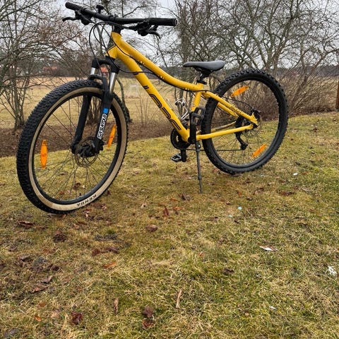 Utrustad med standardpedaler och flaskhållare. Passar för stigcykling och vardagscykling på blandat underlag.