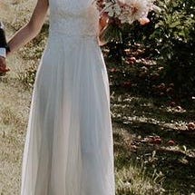 En vacker och enkel brudklänning från By Malina som används under vigsel 2025.