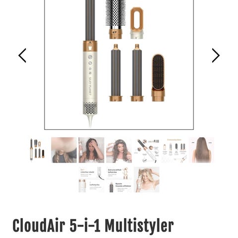 Multistyler Professional 6‑in‑1 hårstyler med flera utbytbara tillbehör för olika typer av hårstyling. Setet innehåller bland annat rundborstar i olika storlekar, munstycke för riktad luft samt diffuserliknande fönmunstycke. Hårstylern har flera värme- och hastighetslägen som styrs via knappar på handtaget. Passar för torkning, volym, lockar och formning av håret. Levereras i förvaringsask med formgjutna fack för varje del samt bruksanvisning.
