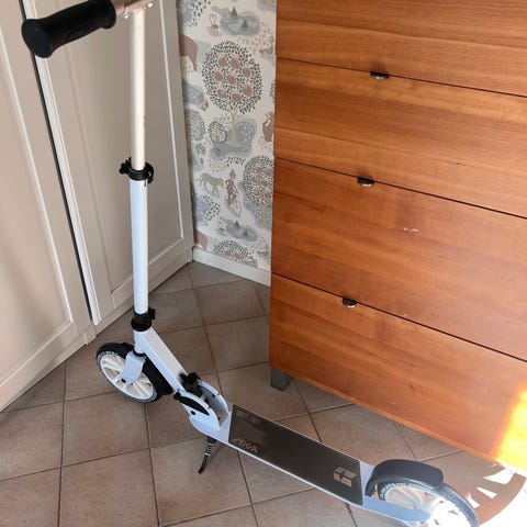2 stycken kickbikes i röd och svart färg. Utrustad med styre med handtag, fotbroms på bakhjulet och halkskyddad ståplatta. Passar för barn eller ungdomar för färd på gång- och cykelvägar eller lek på gården. Max vikt 100 kg. Ihopfällbar. Justerbar höjd på styret. 200kr/styck eller båda för 300kr