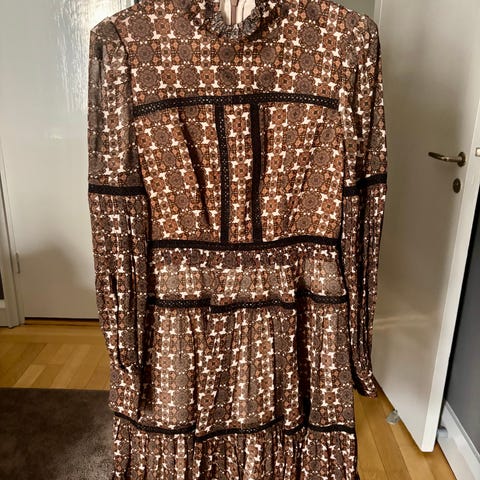 By Malina festklänning för dam i storlek XS. Kort vit klänning i polyester med kort puffärm och utskuren rygg. Klänningen har markerad midja och vågiga kanter nertill och vid ärmslut. Passar för festliga tillfällen och andra högtider.