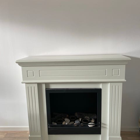 Vägghängd öppen spis från Cervera, märket är Tenderflame, måtten är 130 cm hög och 40 cm bred, väldigt smidig montering med ett väggfäste man hänger den öppna spisen på. Aldrig använd, endast hängt på väggen så skicket är väldigt bra, måttet är 130 cm hög, 40 cm bred, finns på Gärdet i Stockholm, nypriset hos Cervera är 5,999:-, säljes nu för 1,500:-, endast Swish.