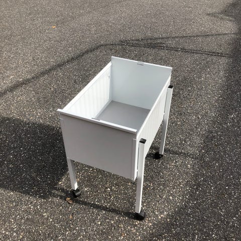 Trävagga lackerad vit. Med lock för praktisk förvaring när den inte används.