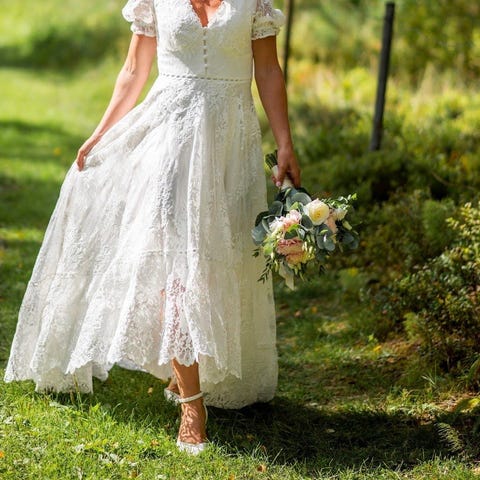 Gör ett försök att till slut sälja min fantastiska brudklänning. Klänningen är i storlek 40-42 och är i bohemisk stil. Superfina spetsdetaljer. En mycket bekväm klänning som inte sitter åt någonstans.