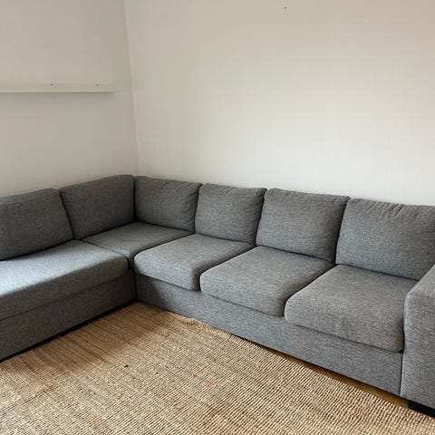 Mörkgrå soffa med divan och schäslong,