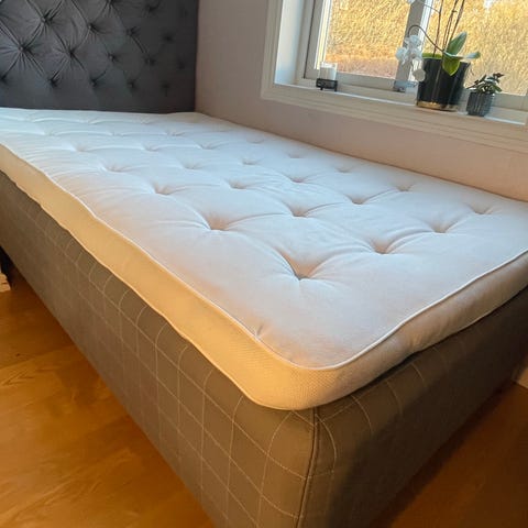 IKEA resårbotten med ben från IKEA och bäddmadrass från JYSK.