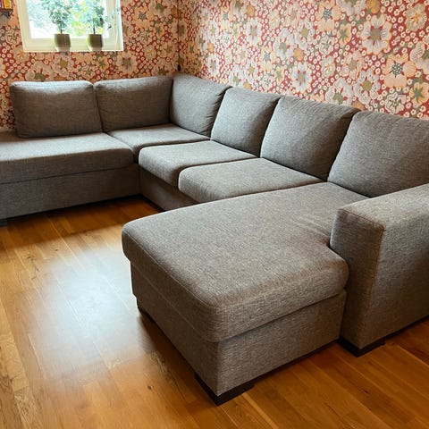 Soffan är rymlig med gott om plats för flera personer och har en modern design som passar de flesta hem. Dynorna är bekväma och håller formen bra.