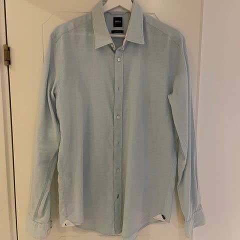 Hugo Boss Hugo skjorta för herr i brun färg. Skjortan är tillverkad i bomull och har passformen Extra Slim Fit med stretch enligt etiketten. Storlek M. Lämplig som vardags- eller kontorsskjorta.