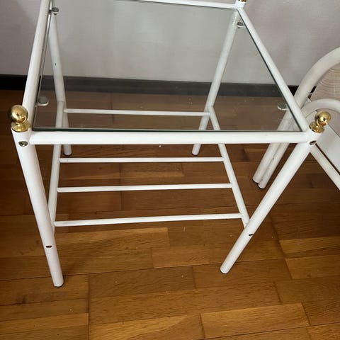 DUX sängbord vit rotting med glasskiva