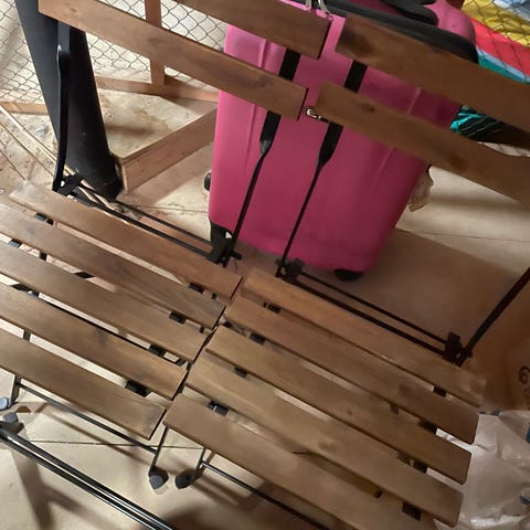 Trädgårdsstol med hög rygg i svart nätmaterial. Helt nya. Stolen har svart metallstomme och ljusa armstöd med träliknande struktur. Passar för användning på balkong, altan eller i trädgård som sittstol vid avkoppling eller måltider utomhus. Finns 2 stycken säljer båda tillsammans