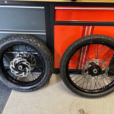 Har ett par fina extrahjul med crossfälgar exel fälgar, kompletta med beg däck.