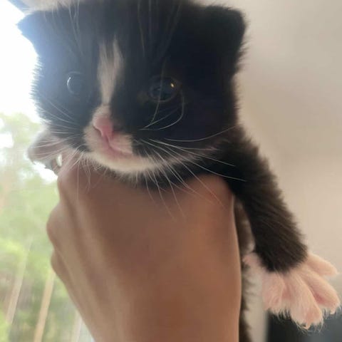 Jätte trevlig nyfödd kattunge, en hona som myser jätte mycket och trygg med sin person!