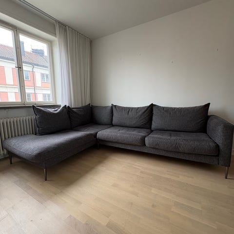 Divansoffa inköpt på BoConcept år 2012 för ca 38000:-. Grå smutsavvisande klädsel. Skön att sitta i.