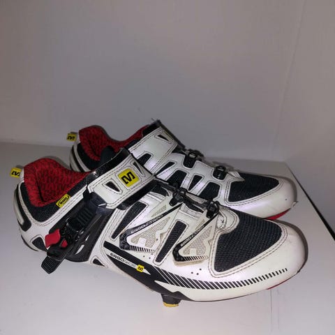 Northwave cykelskor för SPD-klossar i storlek 42. Skorna har ovandel i syntetmaterial med ventilationshål och justeras med vridspännen och vajer. Färgen är grön och vit med svarta detaljer. Sulan är styv med Vibram-gummipartier för bättre grepp vid gång och är förberedd för tvåhåls SPD-klossar. Lämpliga för cykling där SPD-system används, till exempel MTB eller pendling.